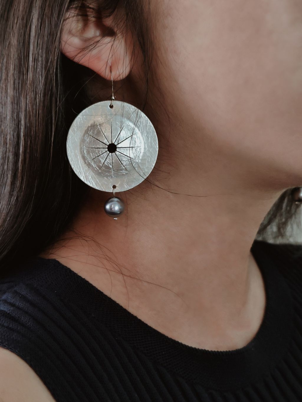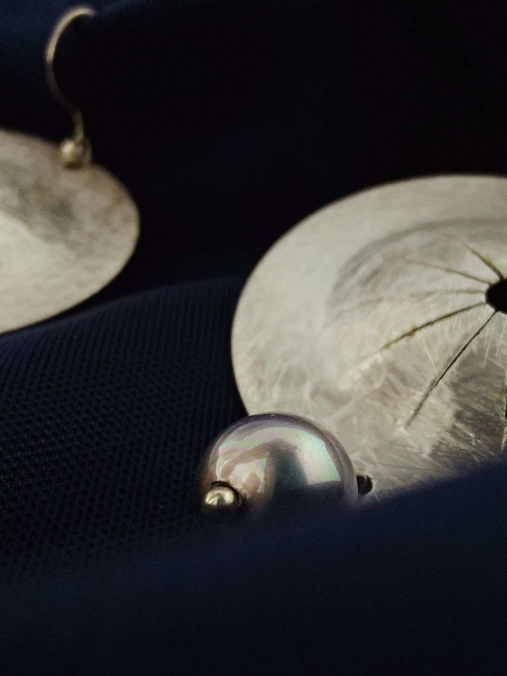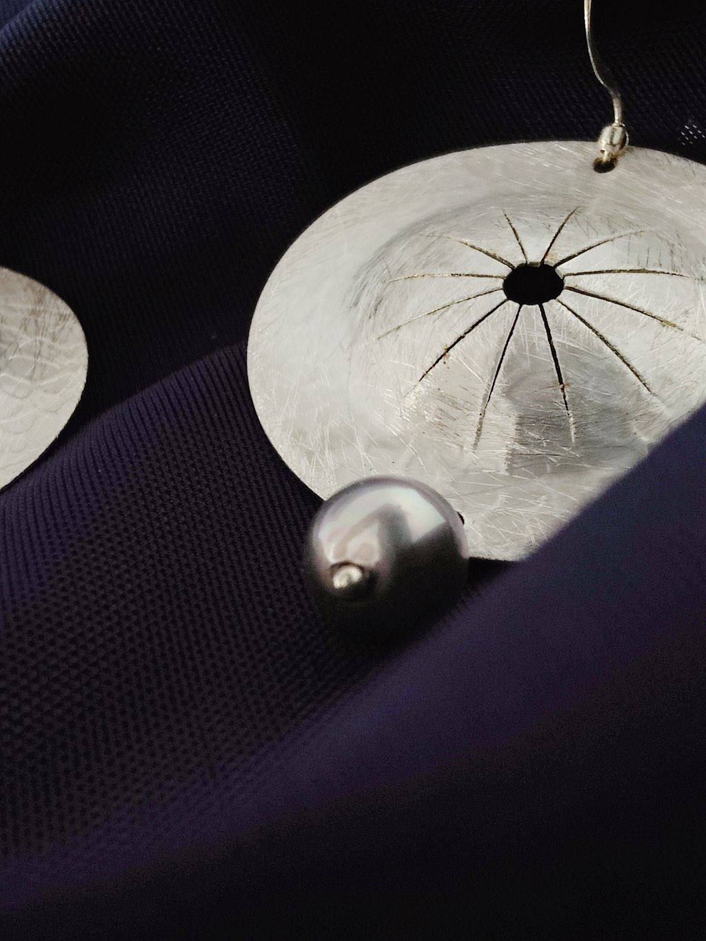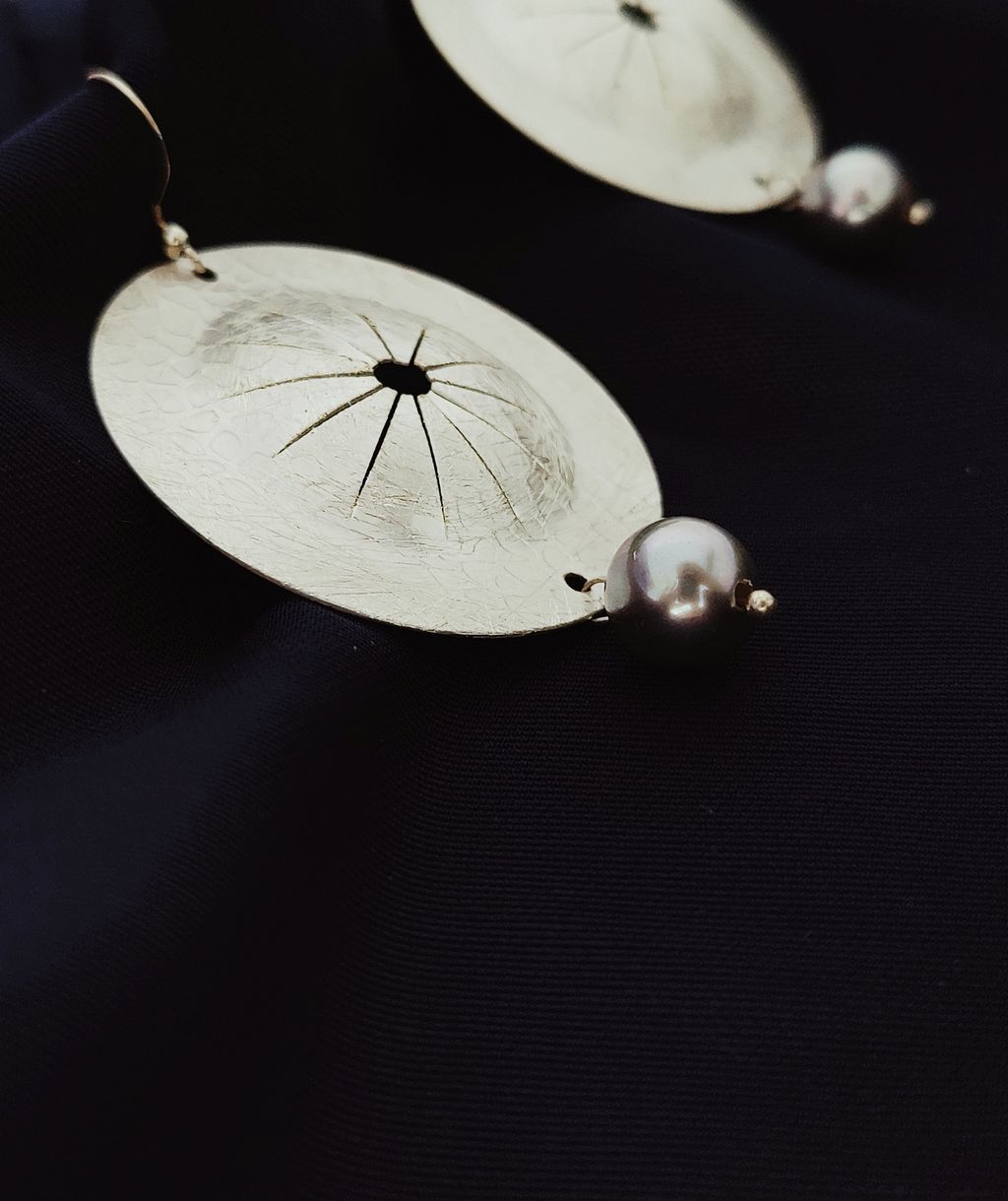 圓盤頌缽藍銀珍珠耳勾耳環