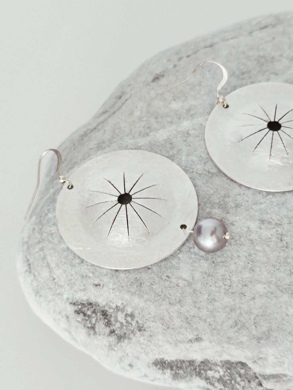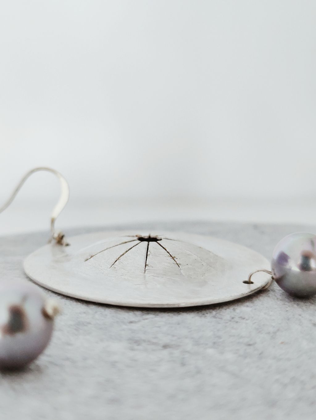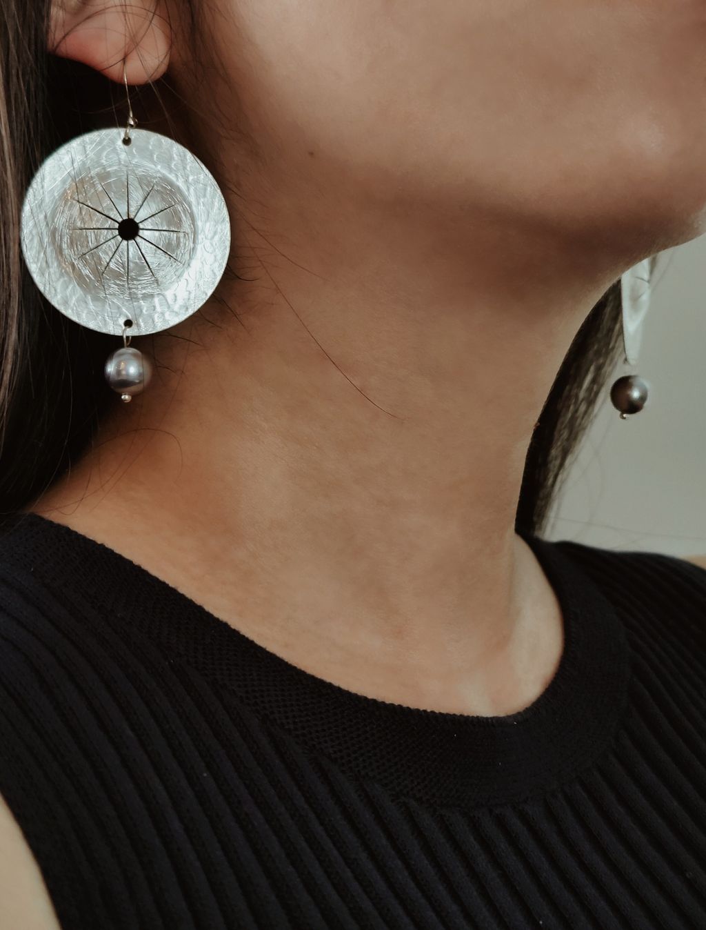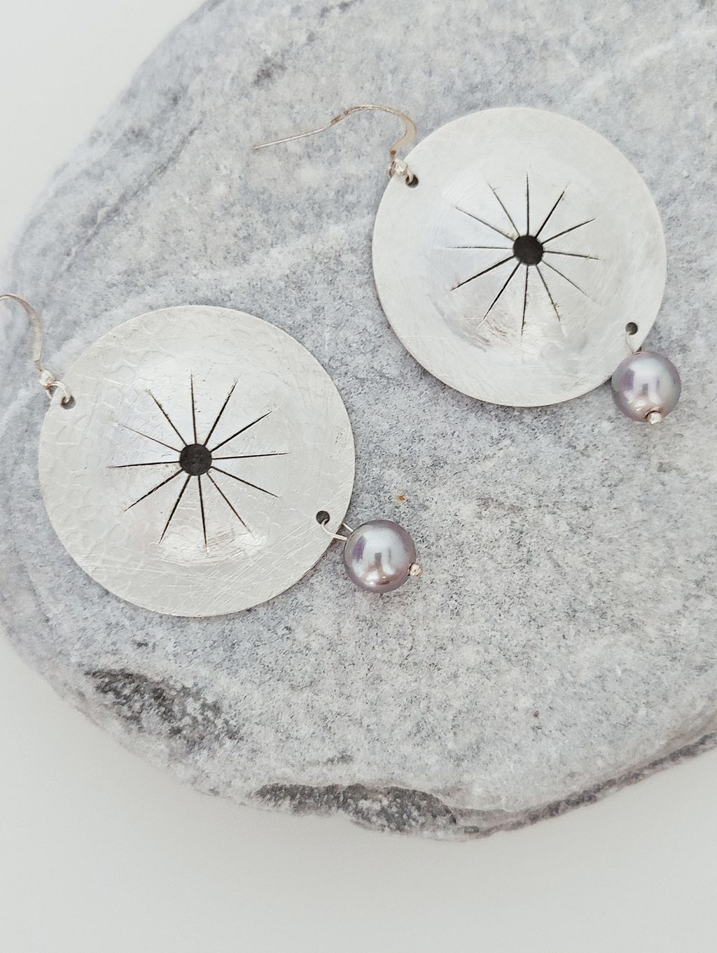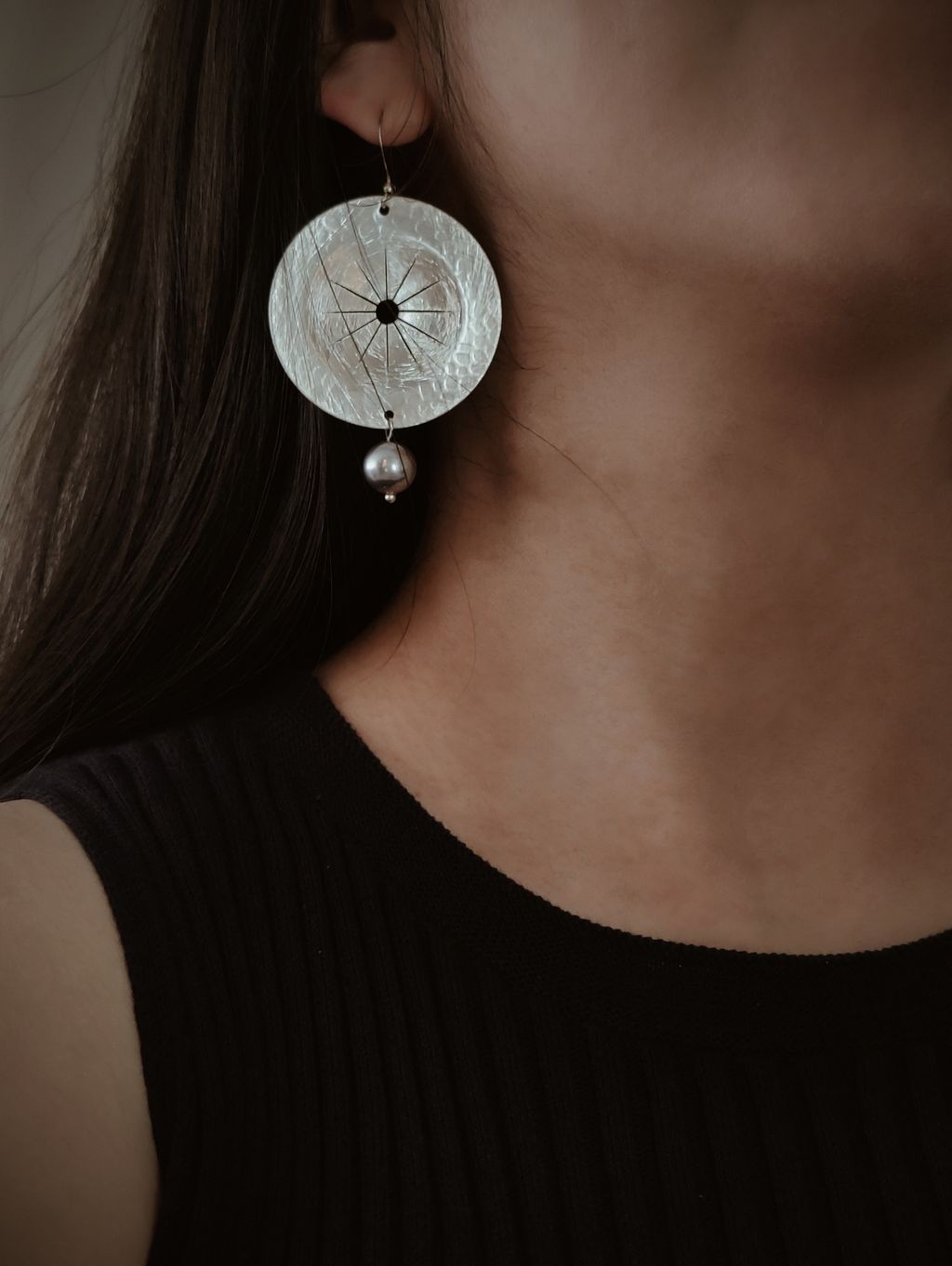 圓盤頌缽藍銀珍珠耳勾耳環
