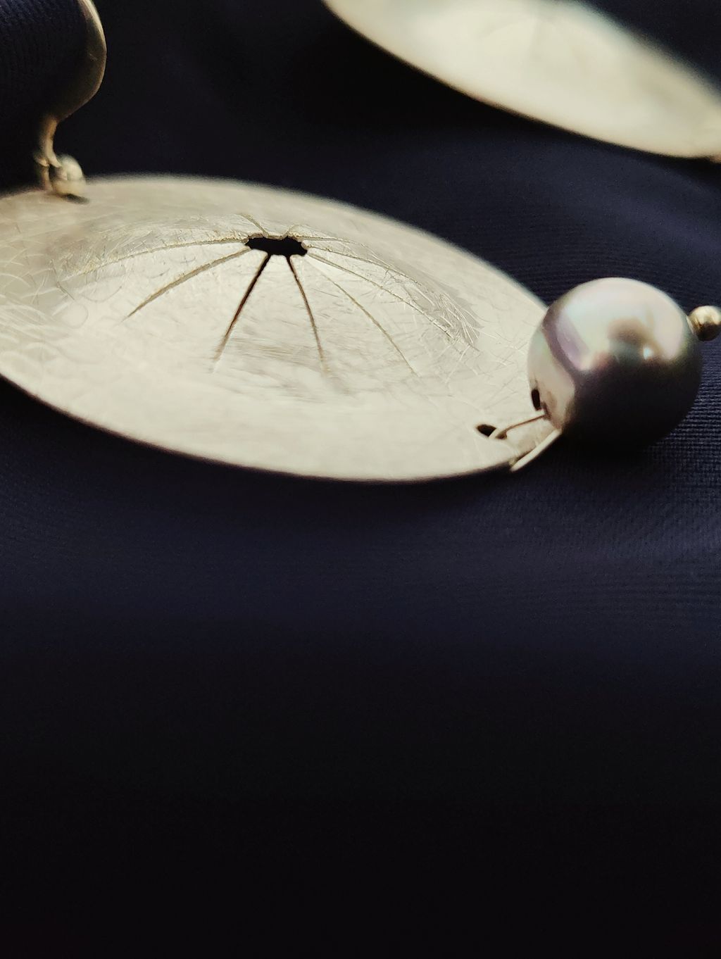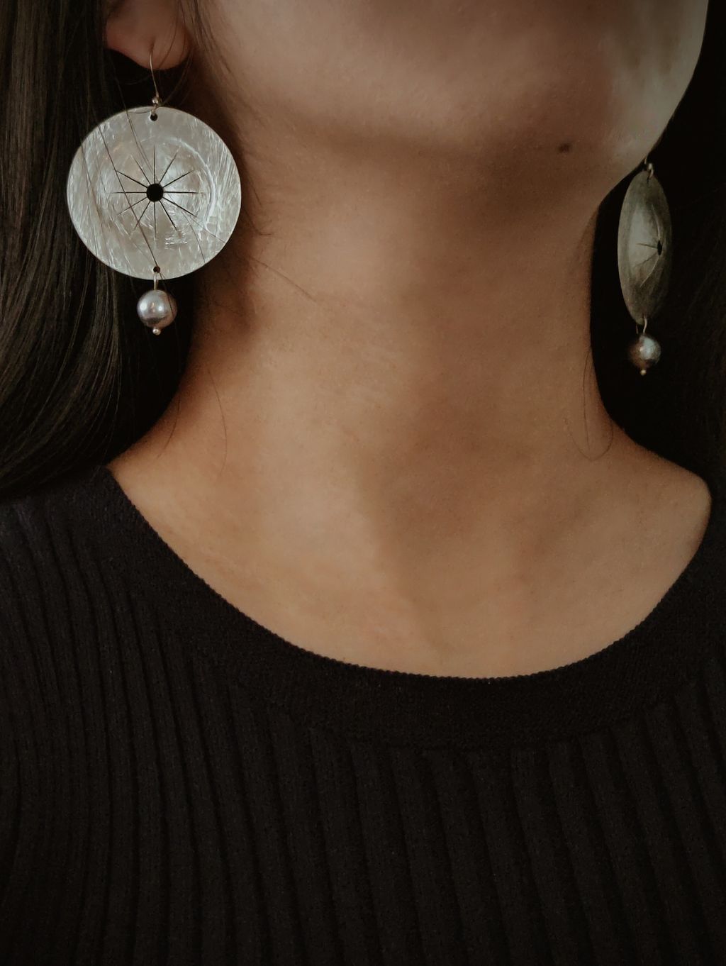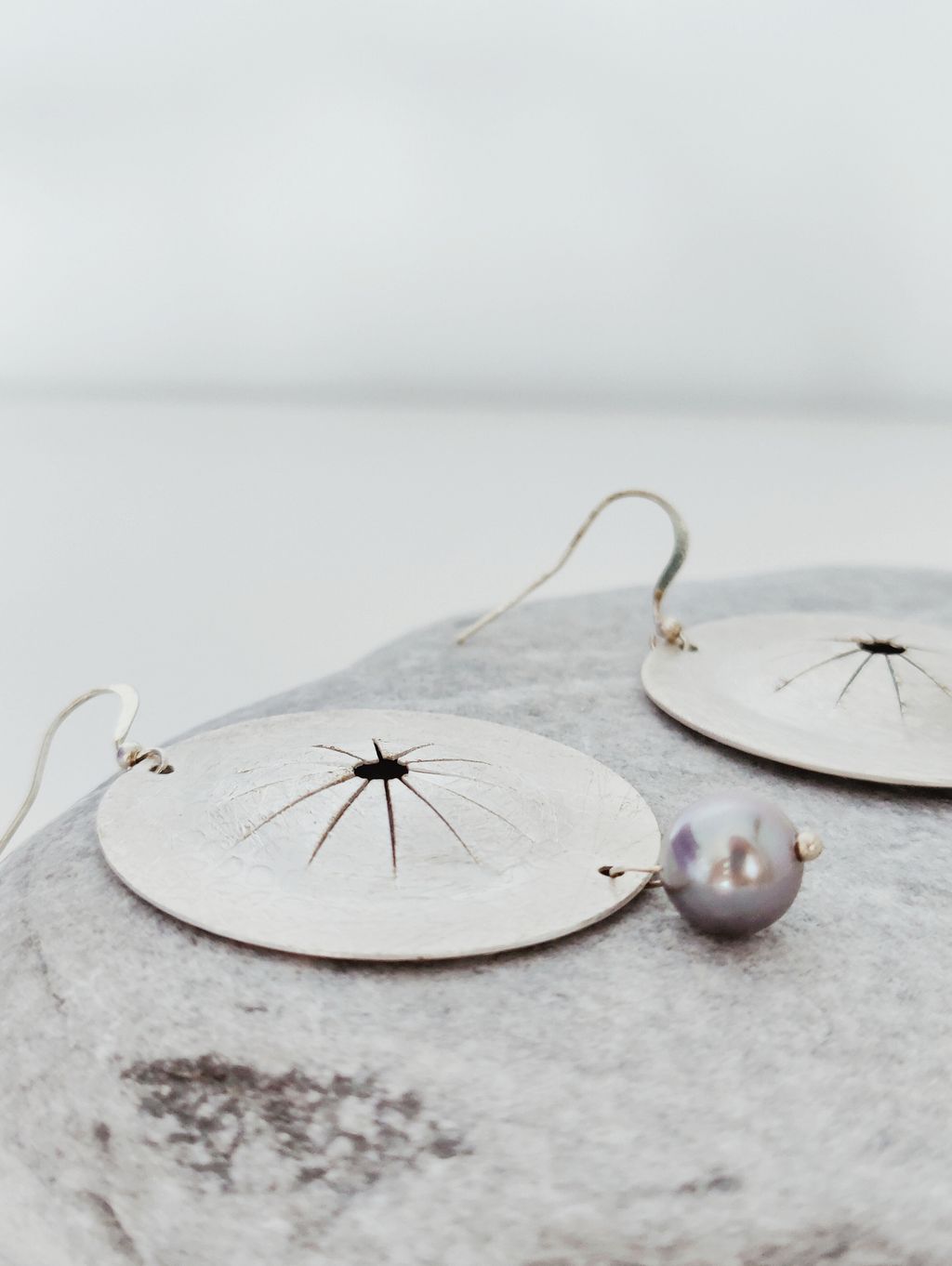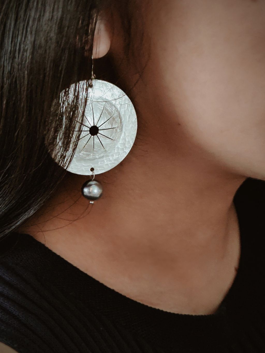 圓盤頌缽藍銀珍珠耳勾耳環