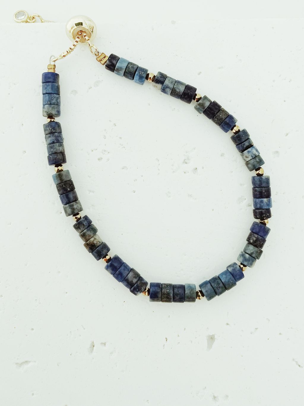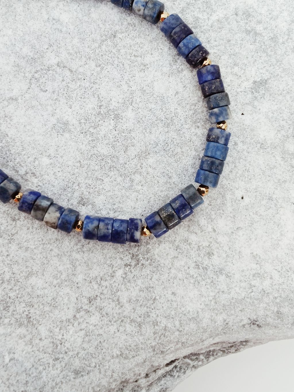藏藍方納石圓片串珠手鍊