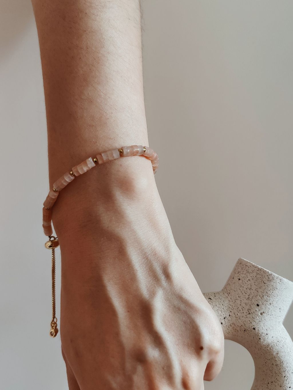 玫瑰石圓片串珠手鍊