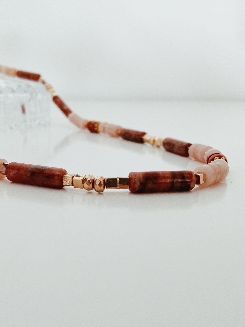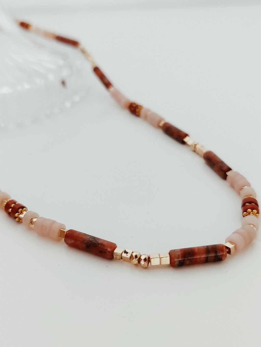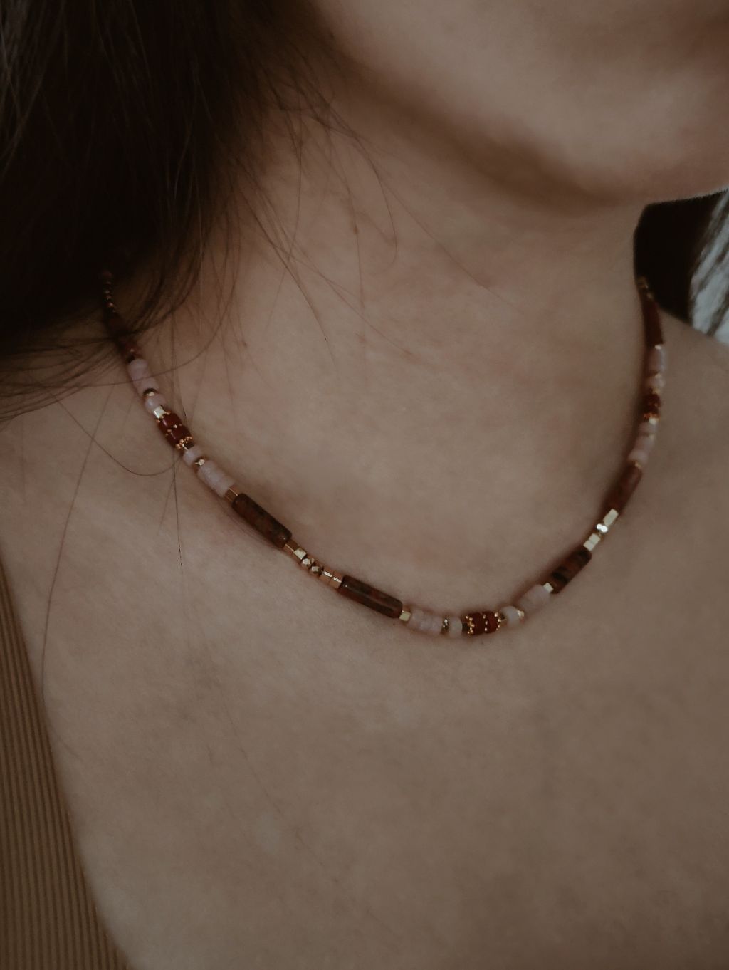 [歐洲連線] 粉晶赭紅玉隨圓柱頸鏈