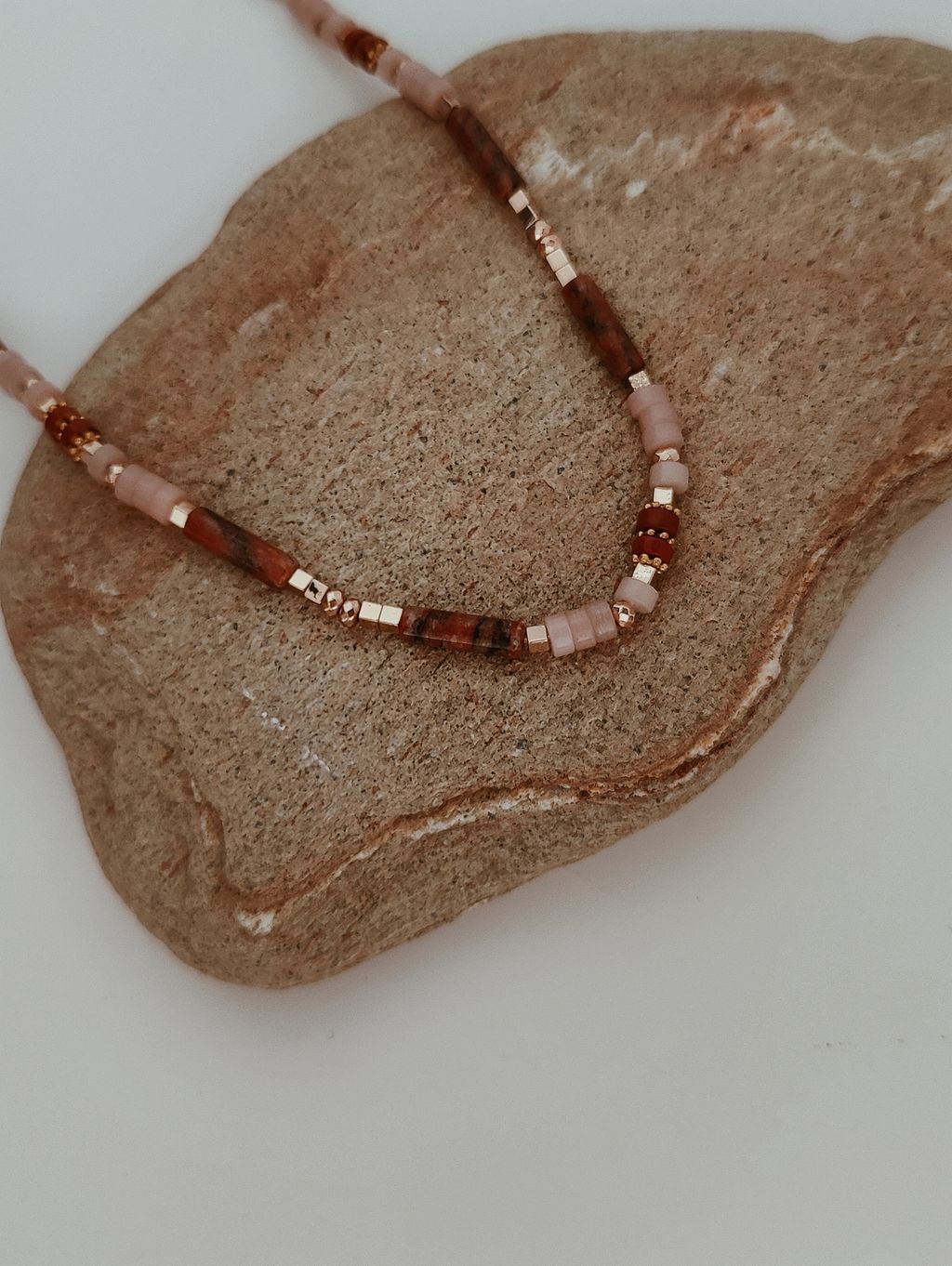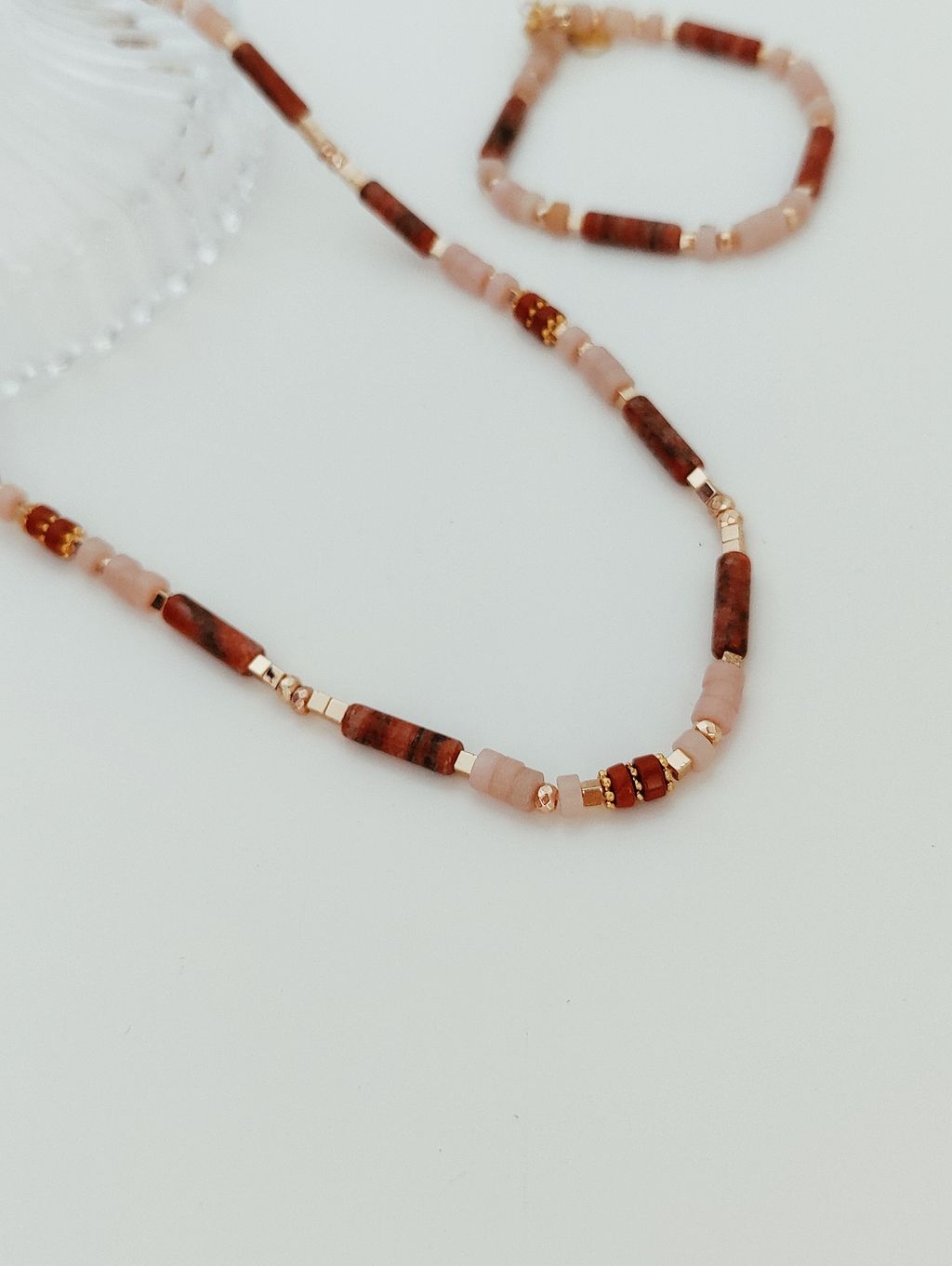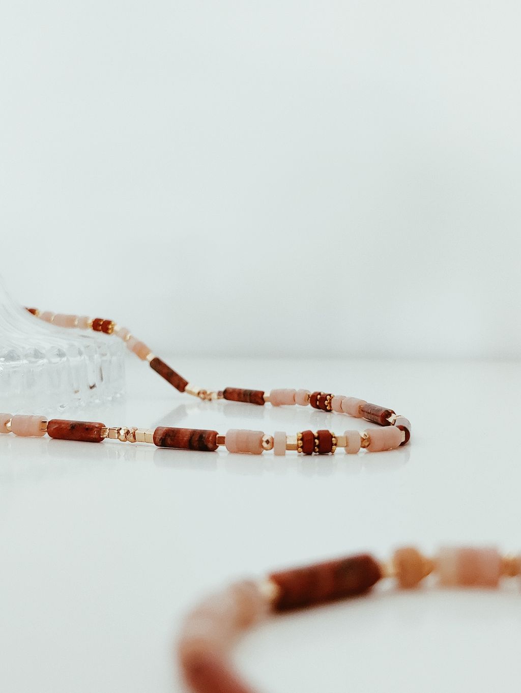 [歐洲連線] 粉晶赭紅玉隨圓柱頸鏈