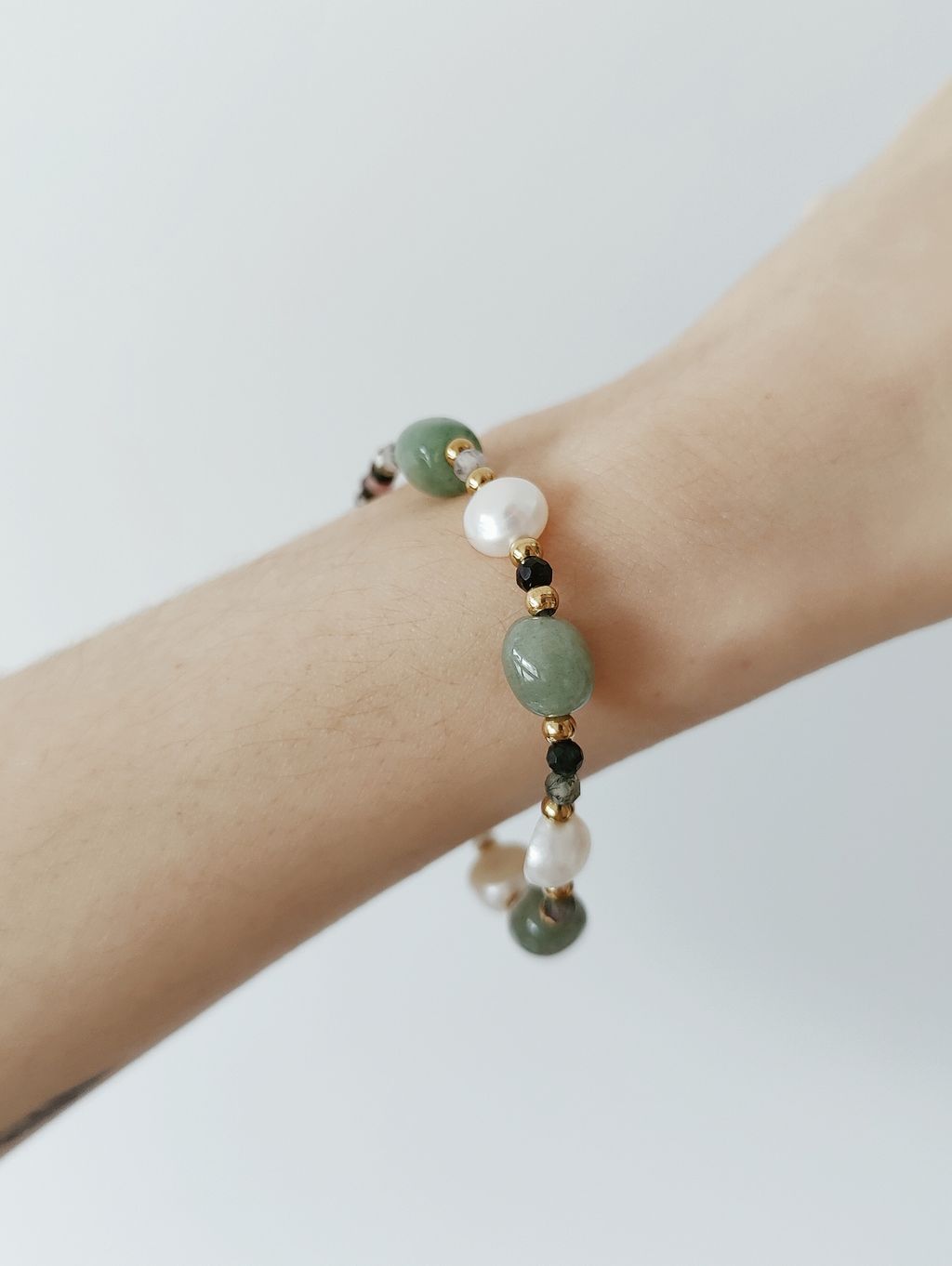 墨綠海藻東陵玉淡海珍珠手鏈