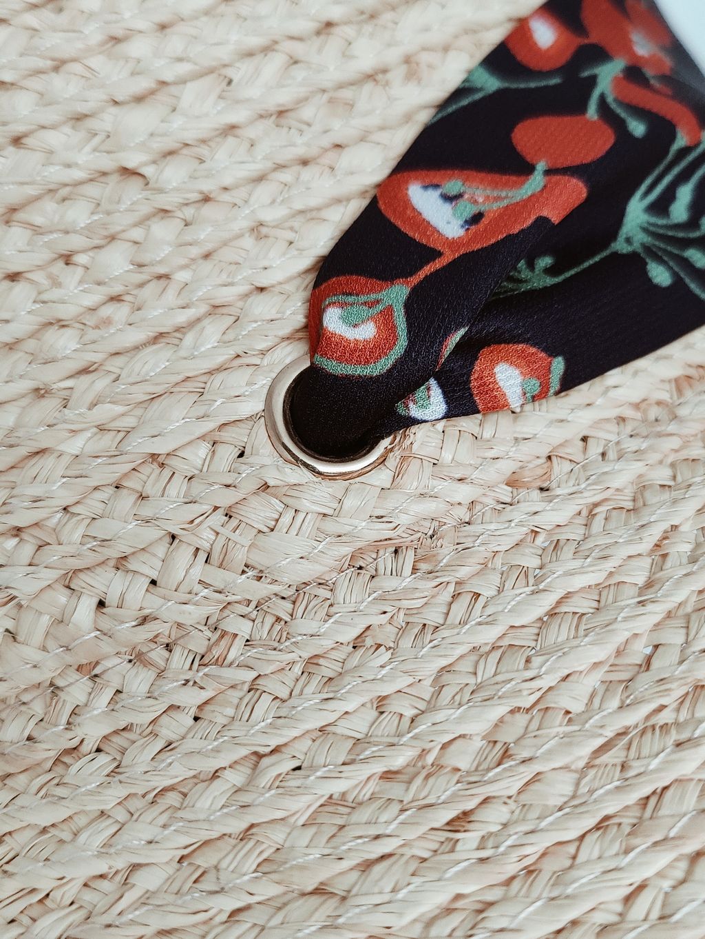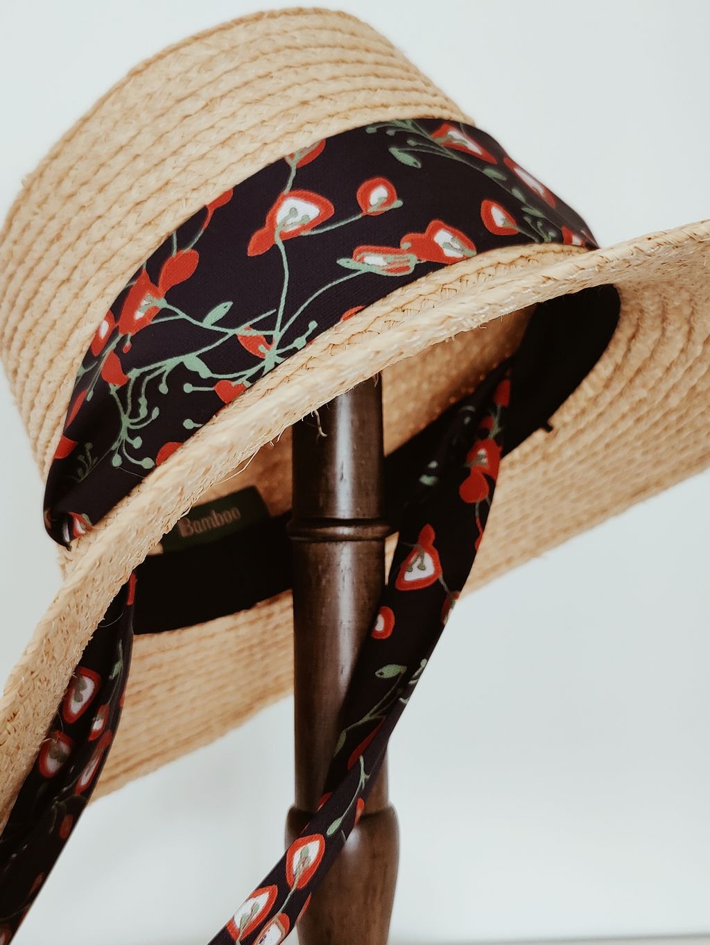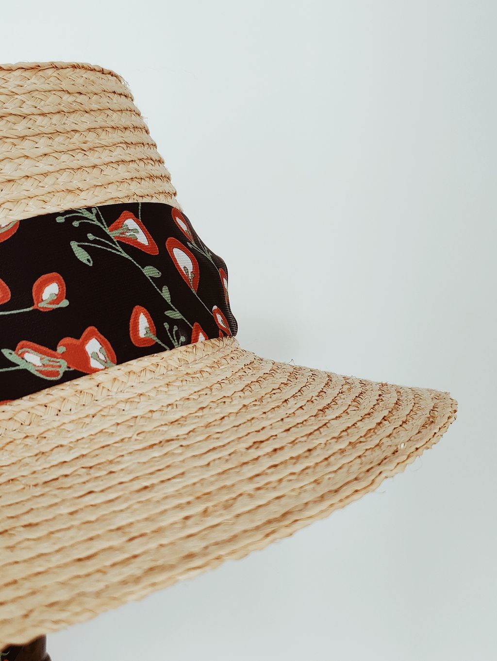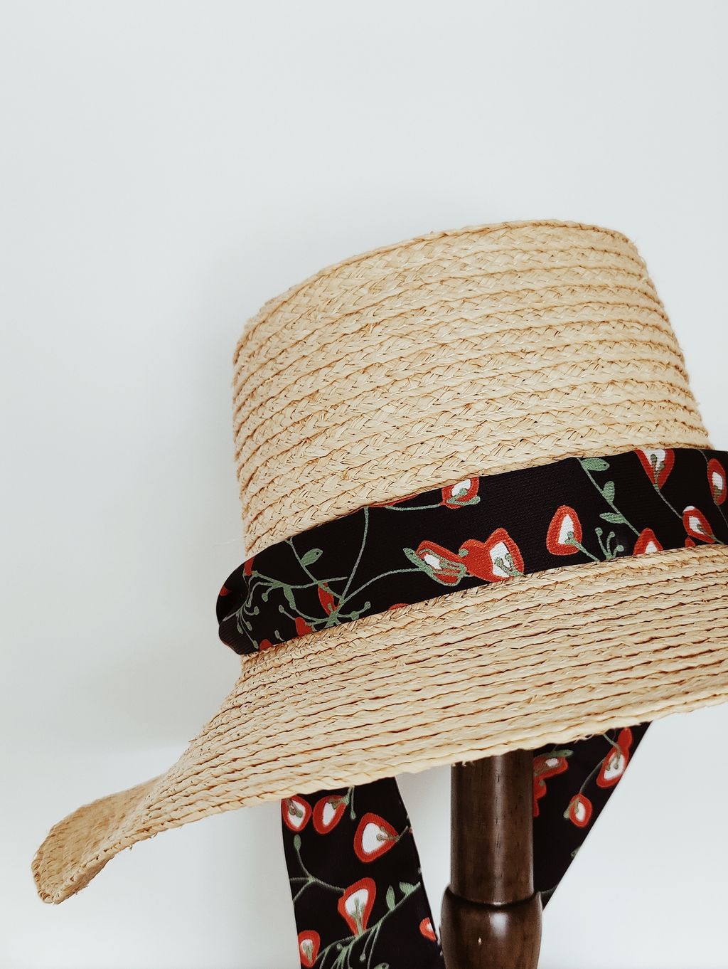 [ 預購線下自取 ] 平頂綁帶草帽 深藍紅罌栗花綁帶