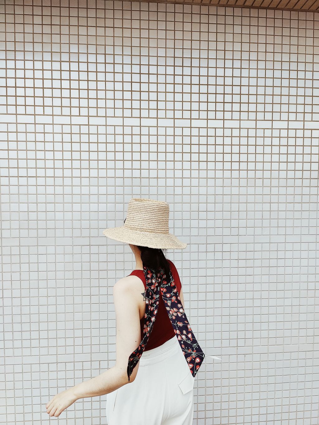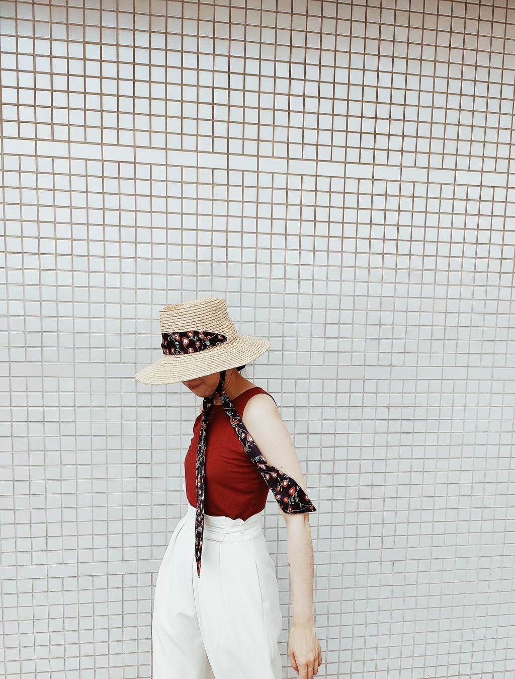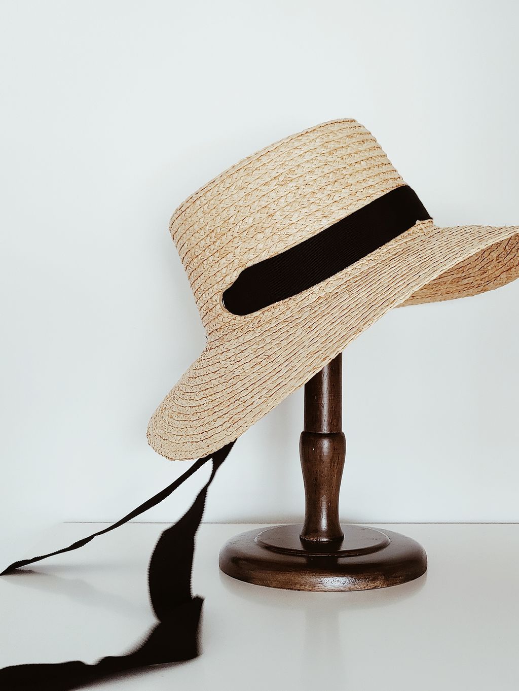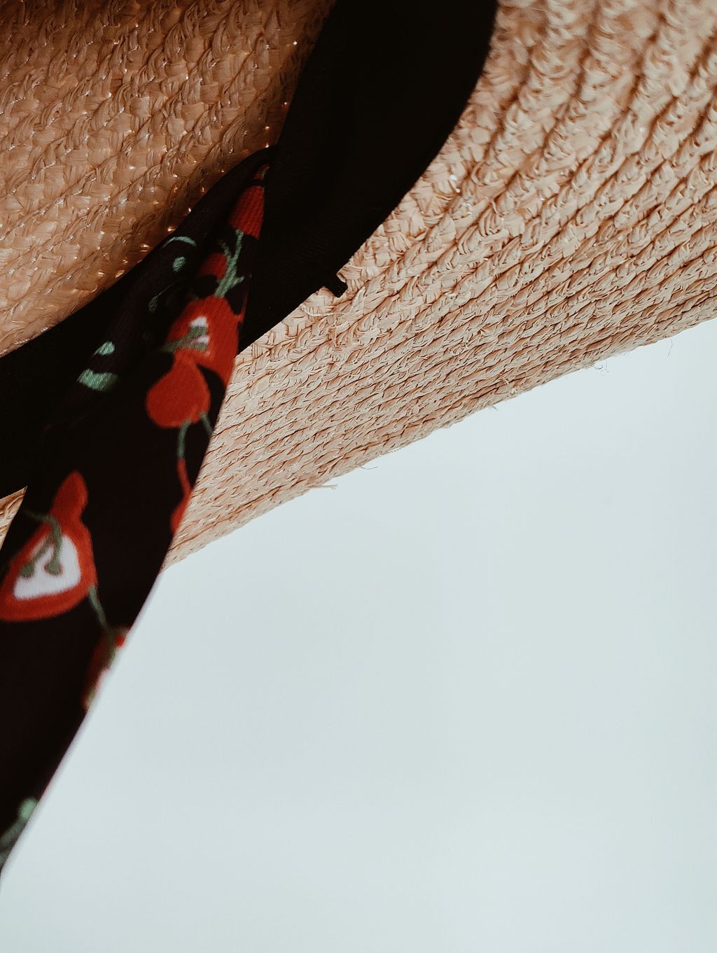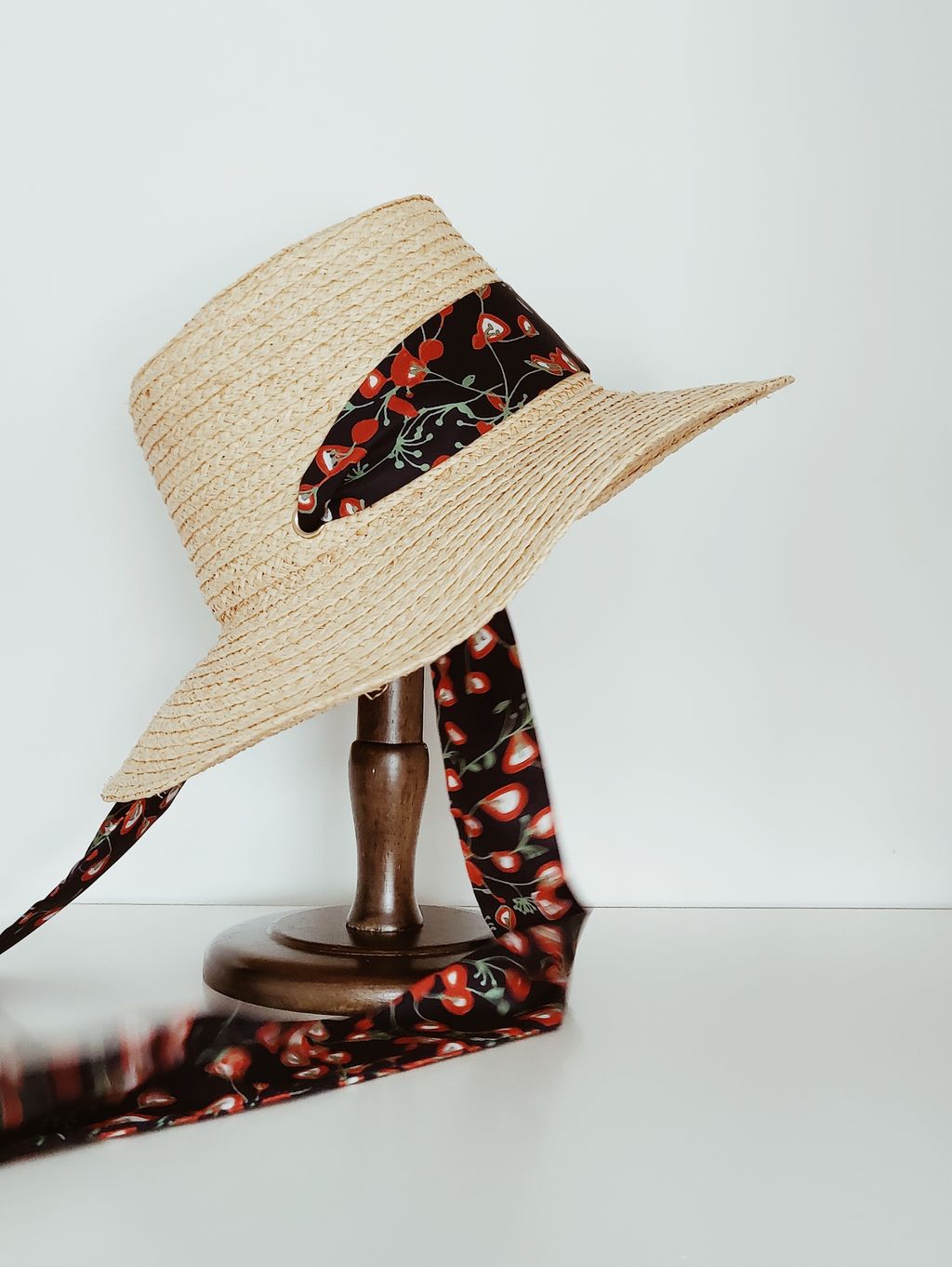 [ 預購線下自取 ] 平頂綁帶草帽 深藍紅罌栗花綁帶